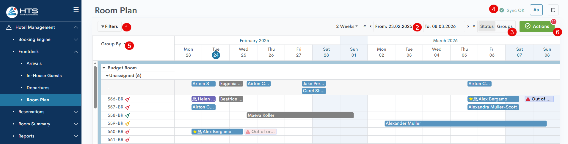 6. Actions button highlights the reservations that are unassigned or have an overbooking conflict.