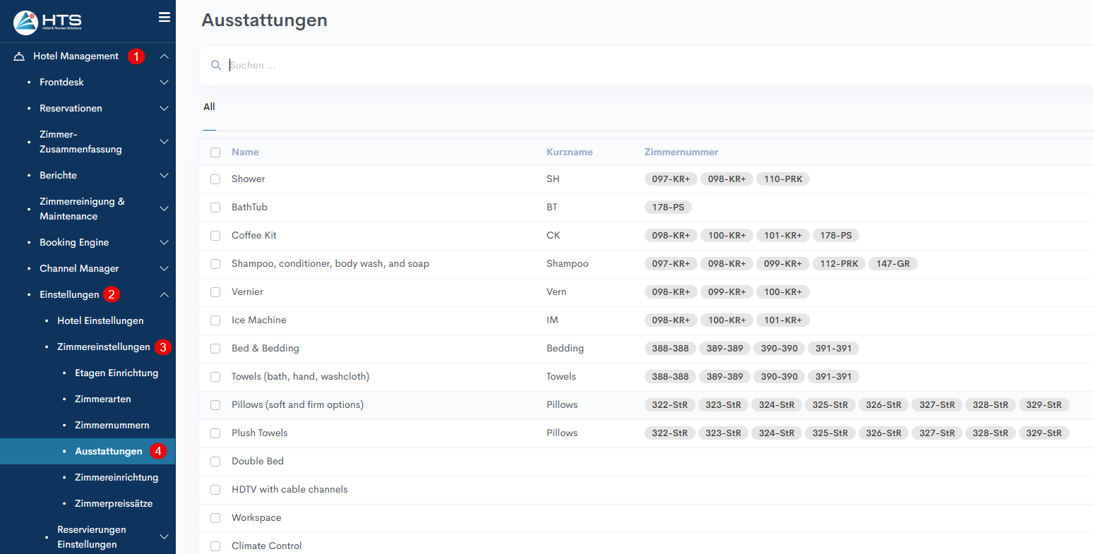 3. 'Zimmernummer' - geben Sie die Zimmernummer(n) an, die dieser(n) Annehmlichkeit(en) entsprechen.