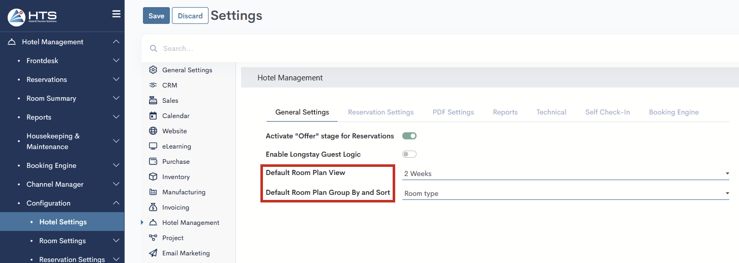 - Default Room Plan Group By and Sort - Select an option for how rooms will be displayed on the Room Plan: Room Type, Floors, A->Z, or Z->A.