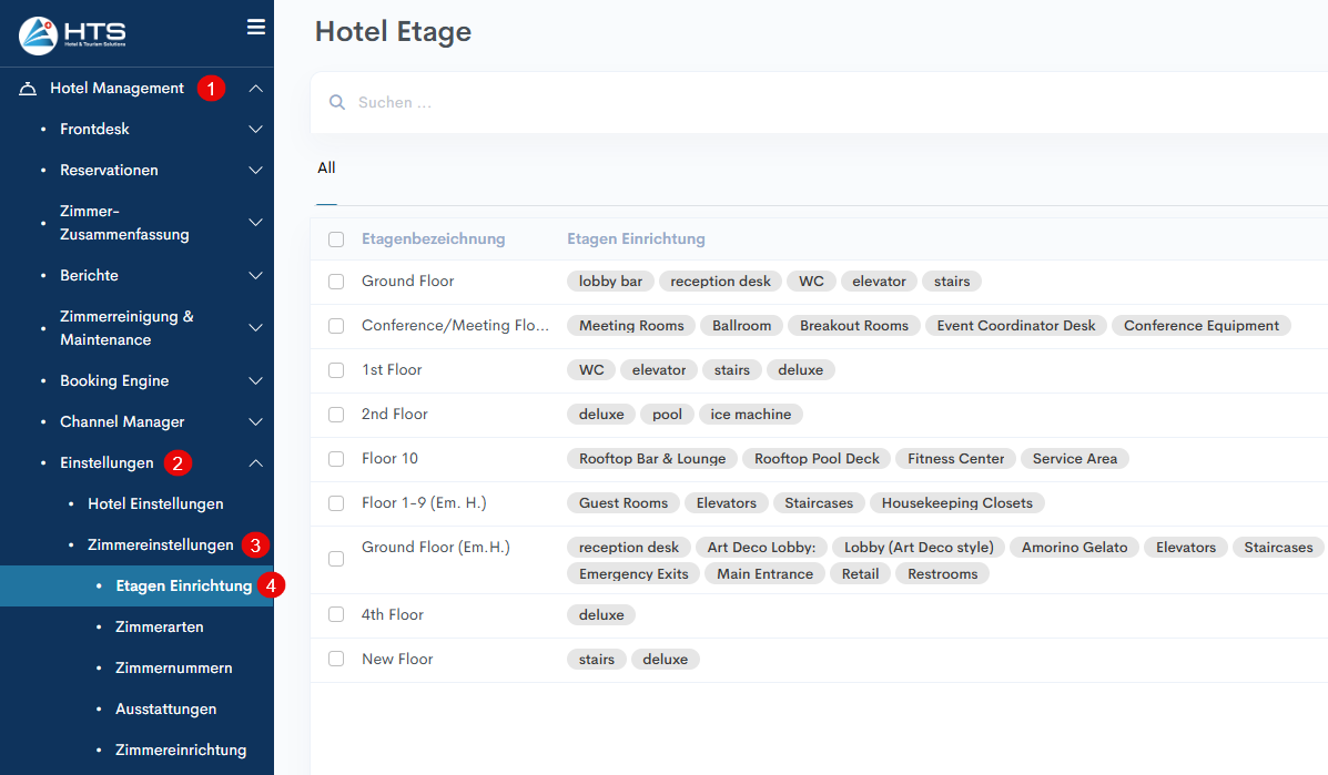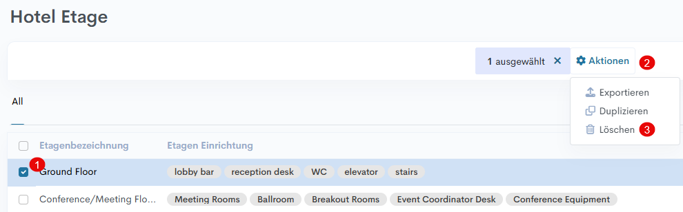1. Um einen Eintrag zu ändern, klicken Sie einfach auf die entsprechende Zeile und nehmen Sie alle notwendigen Anpassungen auf der Etagen-Seite vor;