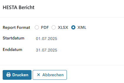 Der HESTA-Bericht kann nun nicht nur im PDF-Format, sondern auch im XML-Format generiert und anschließend an die Behörden übermittelt werden.