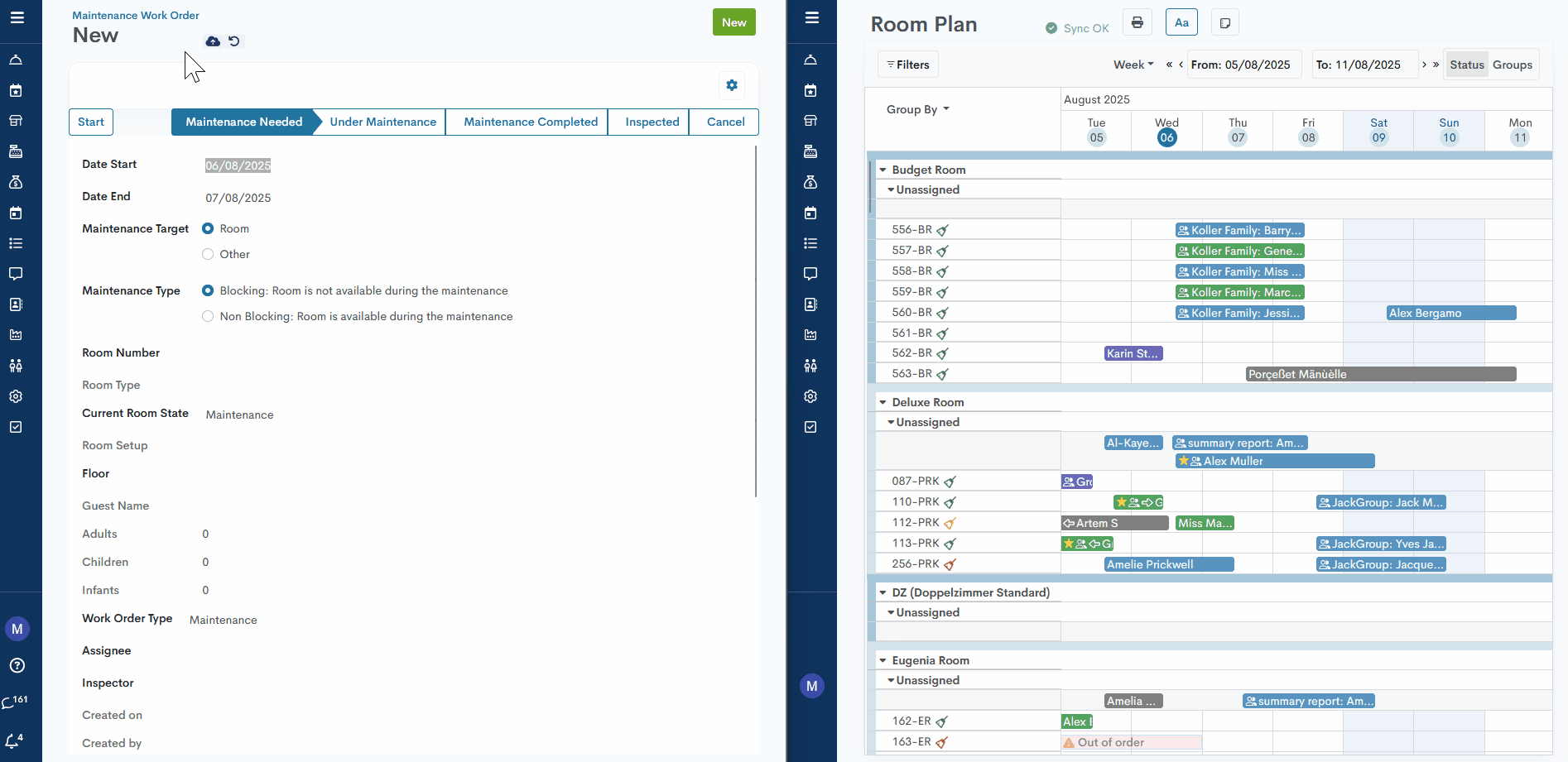 Also, Live Updates work for all fields that are present in the reservation pop-up on the room plan - status, reservation dates, room details, etc.