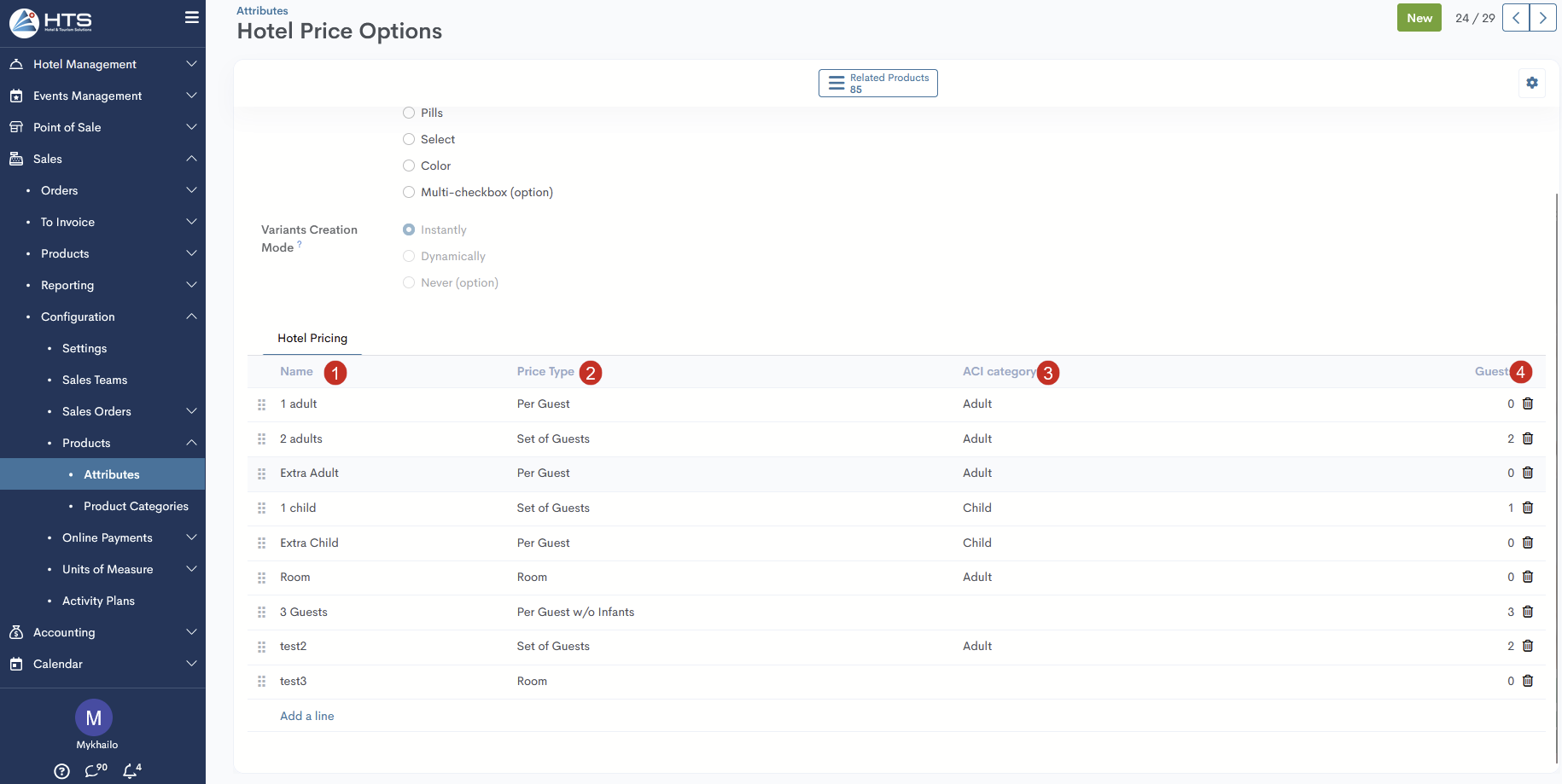 Sobald dies geschehen ist, müssen Sie auf der Registerkarte „Hotelpreise“ neue Attribute erstellen, indem Sie auf „Zeile hinzufügen“ klicken - füllen Sie in die Spalten ein: