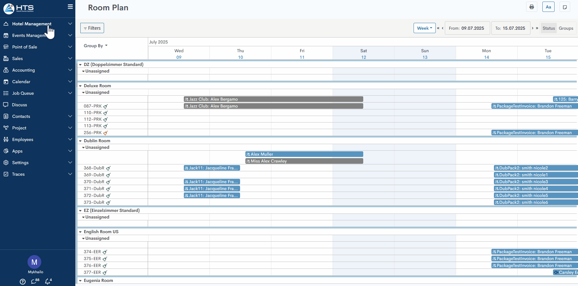 On the right side, a mini calendar is available for easier date navigation. This element can be collapsed to save space if needed.