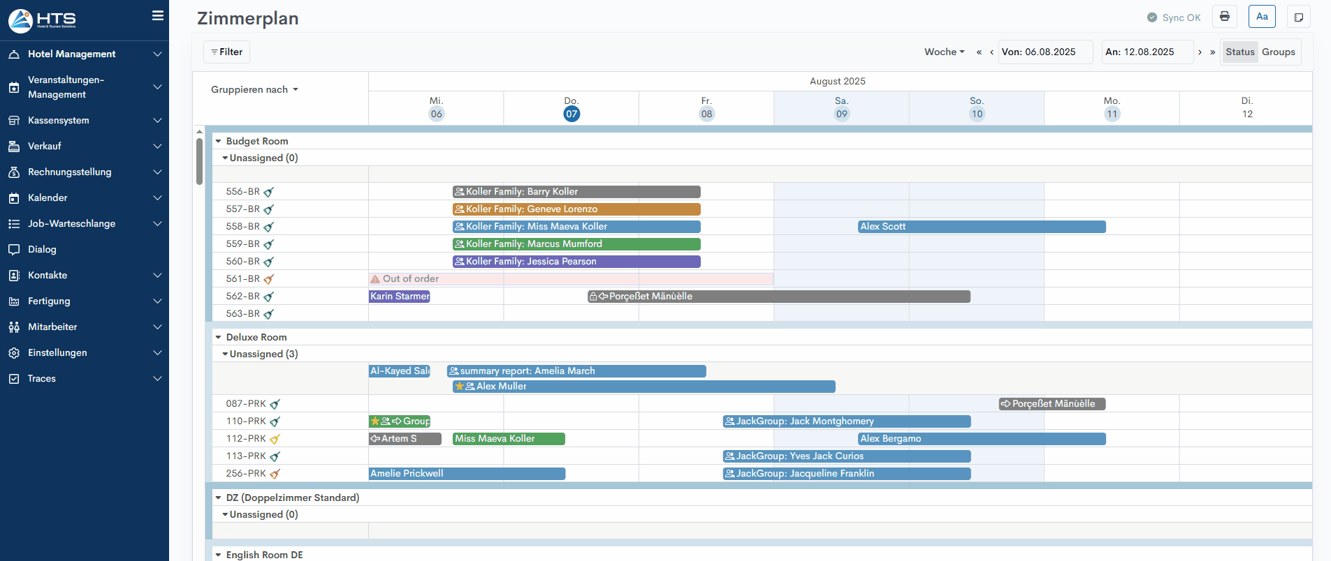 Um auf das Modul Traces zuzugreifen, öffnen Sie das Seitenmenü und erweitern Sie den Bereich Traces. Klicken Sie anschließend im Untermenü auf den Eintrag Traces. Das Modul wird standardmäßig in der Kanban-Ansicht geöffnet. In der rechten Ecke können Sie von der Kanban- zur Kalenderansicht wechseln.