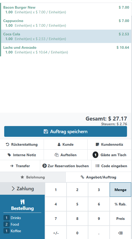 - Reservationsname – die Reservationsnummer, auf die die Kassensystem-Bestellung gebucht wurde.